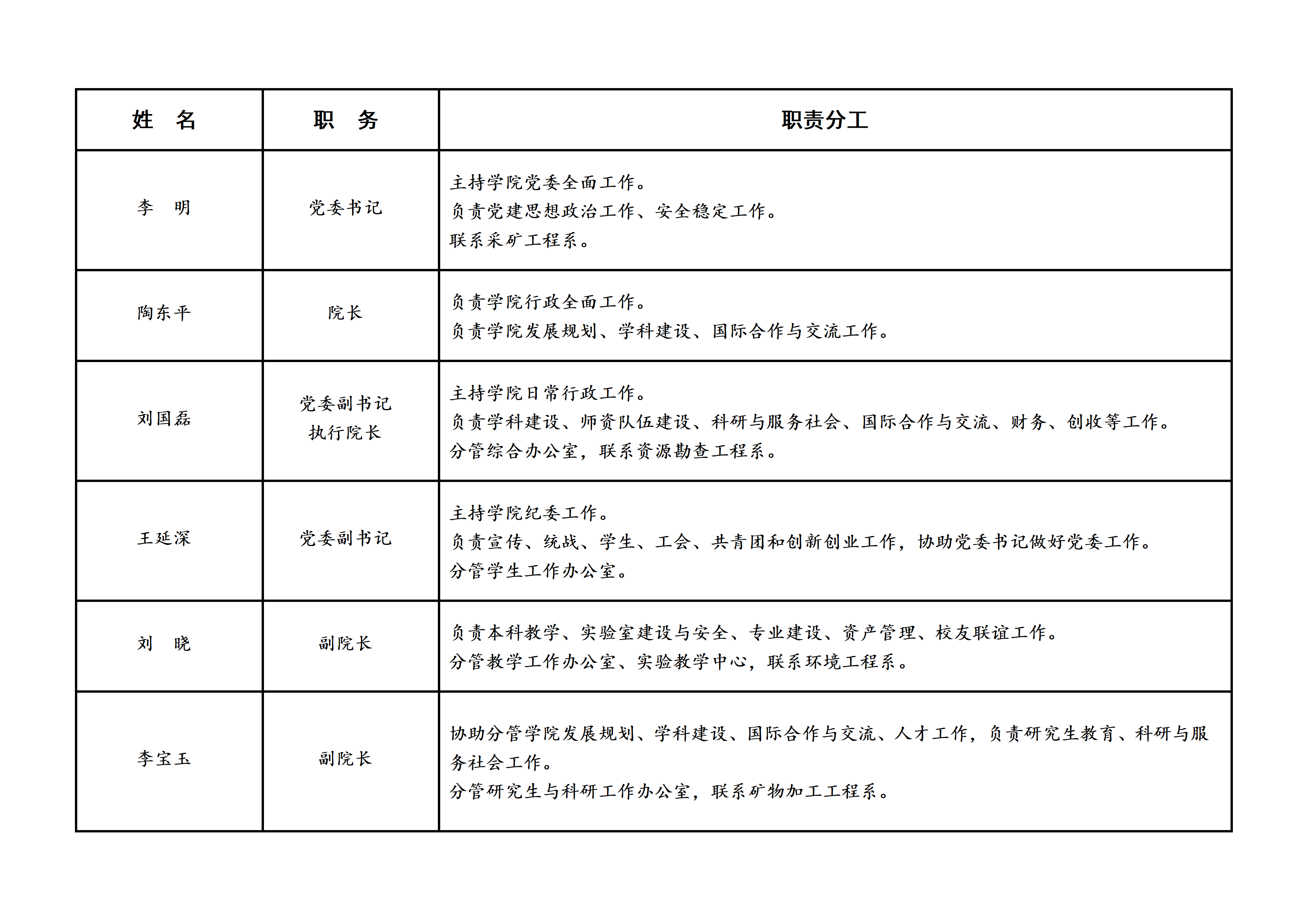 资源与环境工程学院班子分工