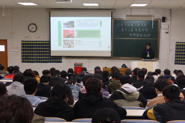 11月23日,资源与环境工程学院在4号教学楼103教室举行第十二届“我爱我师——我心中最爱的老师”候选人评选大会。校学生会监察委员会成员、学院各年级学生代表参加,院学生会主席团成员毛航主持评选。