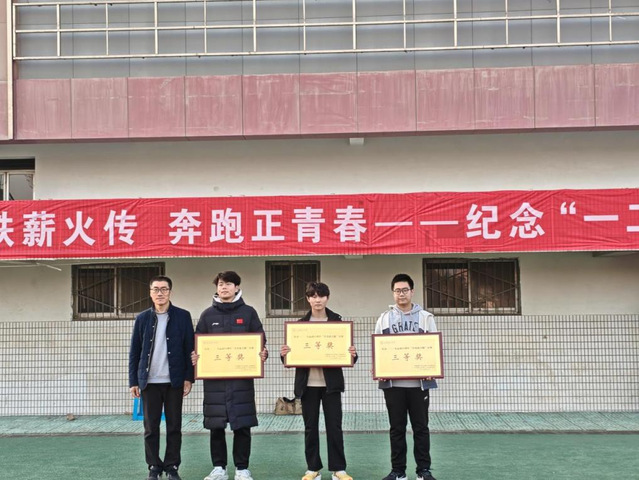 为纪念“一二・九”学生爱国运动90周年,传承红色基因,厚植爱国情怀,12月6日下午,学校纪念“一二・九”运动90周年“青春接力跑”活动在西校区第二体育场顺利举办。我院组建 25 人师生联合队伍参赛,其中教职工5名、学生20名,共同完成10000米接力跑挑战,以第六名成绩斩获三等奖。