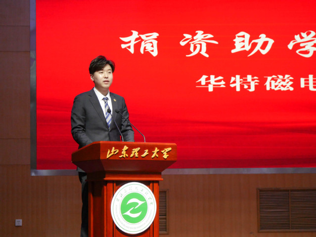 华特集团执行总裁王前代表捐资助学企业发言,他谈到,华特集团与山东理工大学已携手十七载,双方通过一系列务实举措在人才培养、技术攻坚、成果转化等领域实现深度融合。他期盼校企双方持续深化合作,为中国矿业绿色低碳高质量发展提供坚实的人才保障与智力支持。
