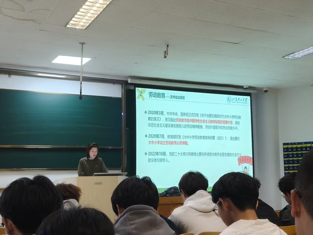 班会伊始,辅导员赵佳佳围绕劳动教育的时代意义、劳模精神与工匠精神、校园劳动与专业实践等内容展开讲解,带领同学们学习劳动教育相关文件精神,倡导尊重劳动、热爱劳动、勤于劳动、善于劳动。班会通过理论学习、案例分享、互动讨论、心得交流等形式,让同学们深刻理解劳动对个人成长、校园建设与社会发展的重要价值。