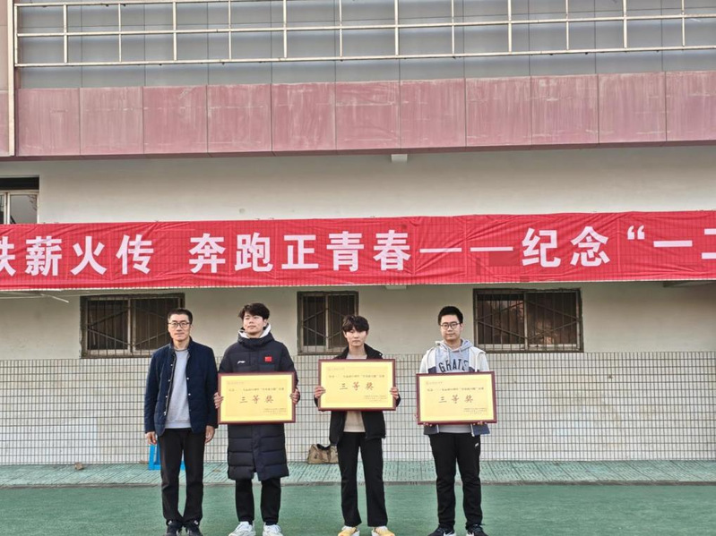 为纪念“一二・九”学生爱国运动90周年,传承红色基因,厚植爱国情怀,12月6日下午,学校纪念“一二・九”运动90周年“青春接力跑”活动在西校区第二体育场顺利举办。我院组建 25 人师生联合队伍参赛,其中教职工5名、学生20名,共同完成10000米接力跑挑战,以第六名成绩斩获三等奖。12月6日下午,西校区第二体育场旌旗招展、氛围热烈。随着发令枪响,首棒队员如离弦之箭冲出起点,迅速进入奔跑节奏,队员们严格遵守赛场规则...
